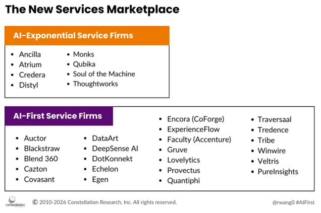 This recognition was not arbitrary. Constellation Research conducted a structured evaluation of AI-first service firms using surveys, outreach, customer references, formal and informal briefings, and reference calls. The result is a data-backed list split across two distinct categories with clear performance thresholds.
